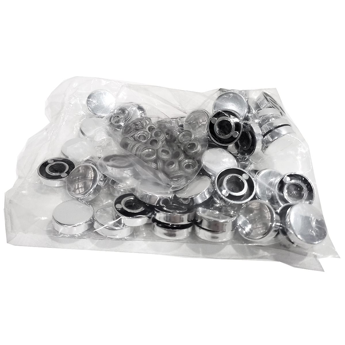 Botão em ABS Cromado, tamanho 01, usado em colocação de espelho.